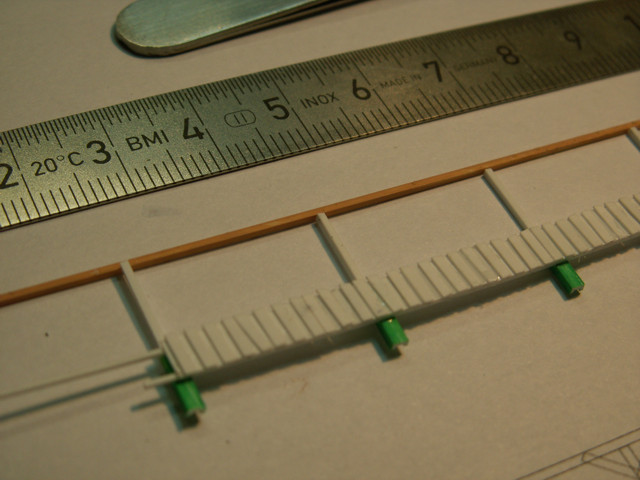 Damit man die Winzigkeit der Stützbalken einmal sieht habe ich ein Lineal