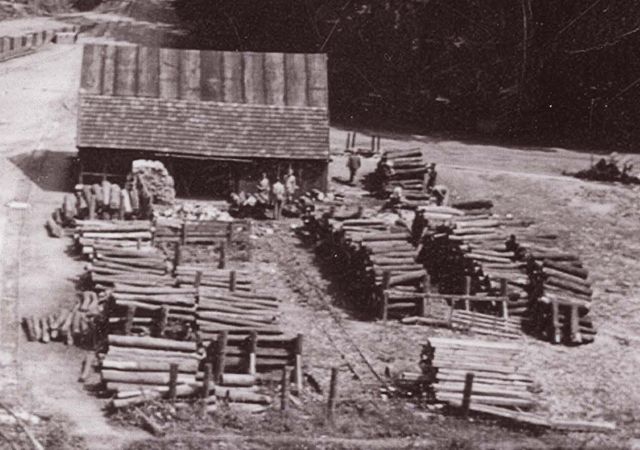 der Holzstützen für die Stollen im Untertagebau. Wie man erkennen