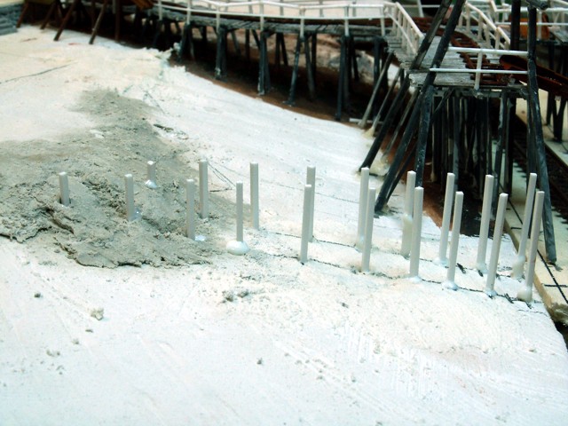 dem Festkleben der Gleise erfolgt ein erster Auftrag von fein gemahlenem