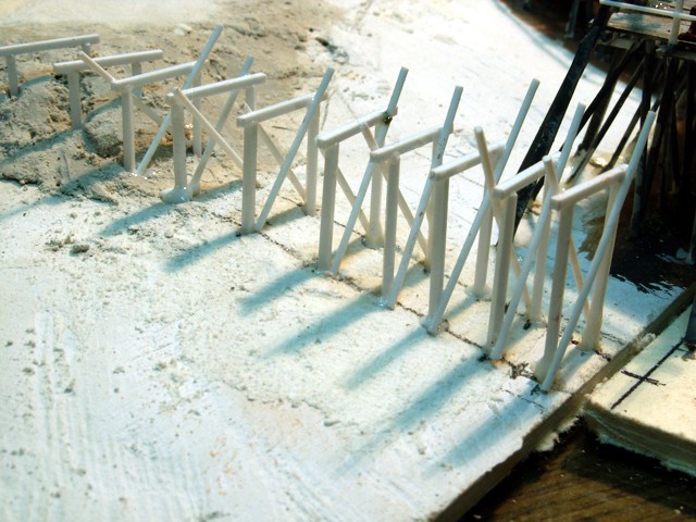 Die Bretter für die Gleise bestehen aus Polysterolstreifen von 0,5 x 1